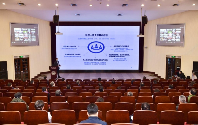陈杰以《遵循规律、抢抓机遇、只争朝夕、追求卓越,深入推进一流大学治理体系与治理能力现代化》为题,回顾了学校2019年工作,分析了当前学校发展面临的形势与挑战,介绍2020年工作思路,部署2020年重点工作。他表示,过去的一年,学校在党建工作、人才培养模式创新、学科内涵式发展、基础研究、大科学设施和科学中心建设、人事人才新体系构建、高层次人才队伍建设、国际合作交流、管理保障体系建设等方面取得了新的成绩,获得了新的发展。今年,学校将在习近平新时代中国特色社会主义思想指导下,瞄准世界一流大学建设目标,依据学校第十一次党代会制定的发展方略,以立德树人为根本、以学科建设为龙头、以队伍建设为基础、以创新发展为引领、以综合改革为抓手,咬定青山不放松,一张蓝图干到底。今年,学校行政确立了四方面重点工作:一是全面加强党的领导;二是推进学校治理体系与治理能力现代化;三是科学谋划学校未来发展蓝图;四是推进“双一流”建设和第五轮学科评估。