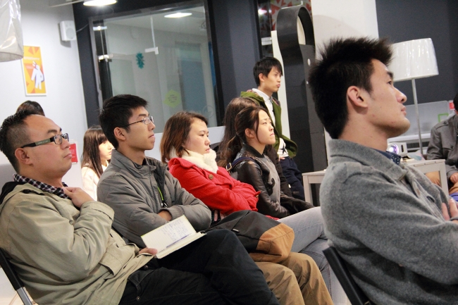 在初步了解到产品的设计理念后,毕业于交通大学信息工程专业的“技术宅”胡学长从专业角度阐述了如何将产品设计落实到技术实现上,他详细讲解了NOW产品的模块架构划分和庞大的用户数据库管理,让在座的听讲者对支撑一款互联网APP的技术实现架构有了大致的概念。