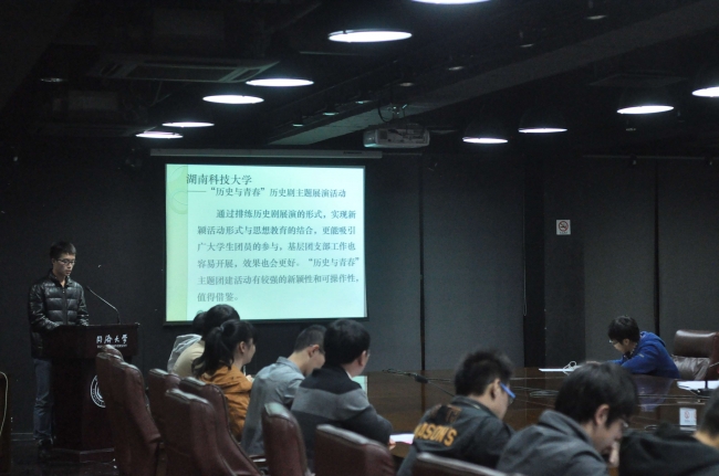 会议开始,谭武老师为各位学生团委副书记介绍了团建活动的含义及意义。讲话中,谭武老师再次强调联席会学生团委副书记的职责,并对在场的副书记们提出新的要求和希冀。通过对11月团支部生活指导意见的解读,各位副书记也都明确了近阶段的工作任务与工作重心。