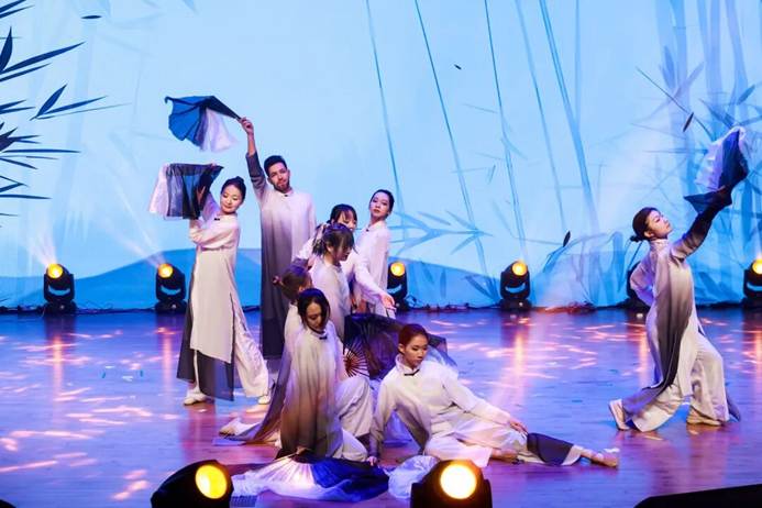 本次晚会共分为“星辰汇聚”“荣光绽放”“智驭远方”三个篇章,以同济大学Neta动漫学生社团(嘉定)带来的舞蹈《赴大荒》开场。