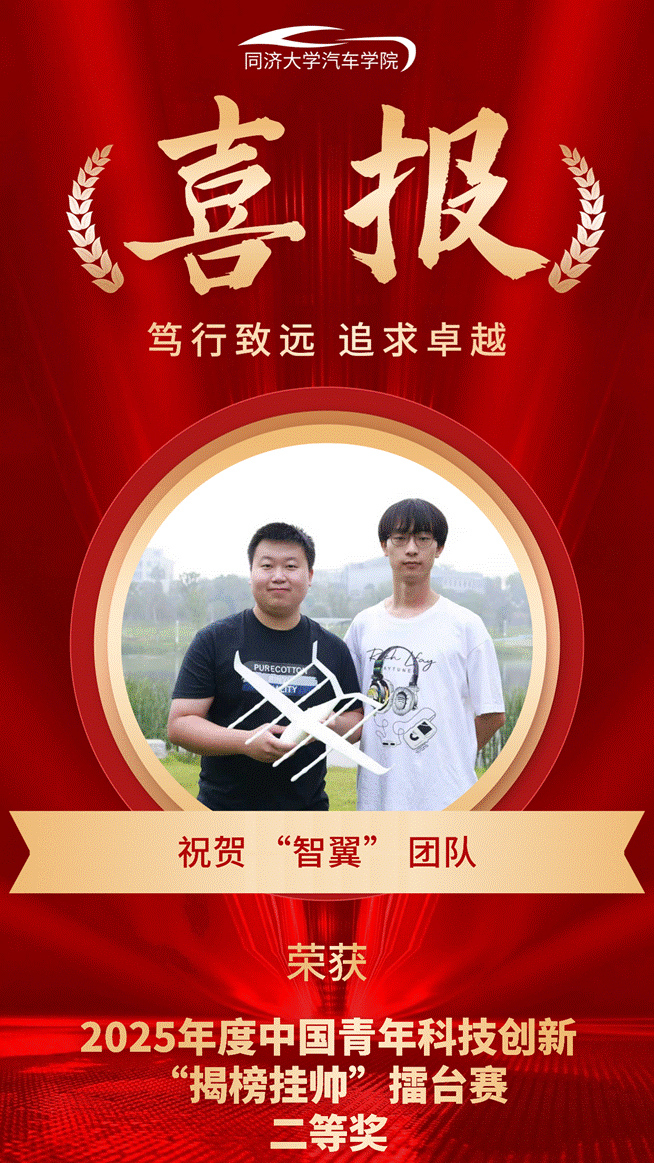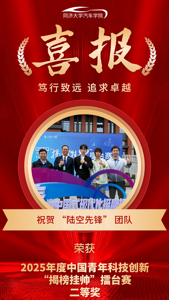 11月3日,第十九届“挑战杯”全国大学生课外学术科技作品竞赛圆满收官,同济大学再创佳绩,蝉联“优胜杯”。本次挑战杯设置了“揭榜挂帅”擂台赛,聚焦新一代信息技术、人工智能等8大战略性新兴产业,在全国设立8个主擂台城市,同济大学获得“擂主”(全国第一名)1项、特等奖5项、一等奖5项、二等奖4项、三等奖4项、优胜奖1项,其中我院参赛团队在该赛事中取得二等奖2项。