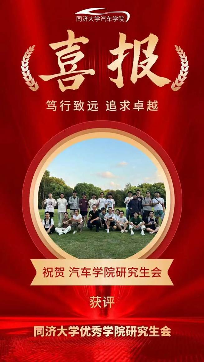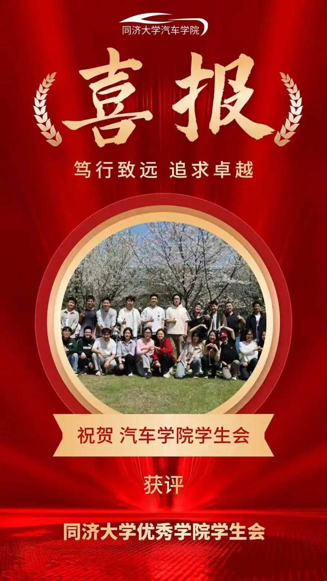 在此次评选中,汽车学院表现突出。经评审委员会组织考核,汽车学院学生会荣获“同济大学优秀学院学生会”称号,汽车学院研究生会荣获“同济大学优秀学院研究生会”称号。