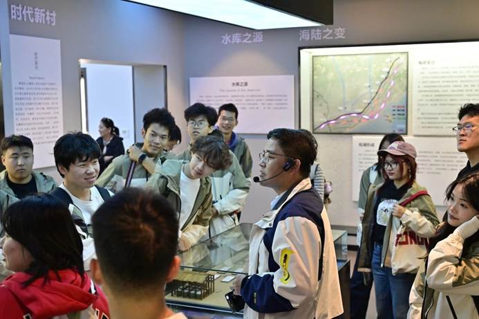 午后,学员们前往水库村,先后参观了“两山馆”(水库村村史馆)、“在水一方”综合服务区和“漕泾数字游民国际村”。昔日的渔村被赋予了新的生命力,传统与现代在碧波间交融共生,大家深刻感受到当地坚持“绿水青山就是金山银山”的建设理念,在保护生态的同时,以文化和产业为引擎,推动乡村的可持续发展。