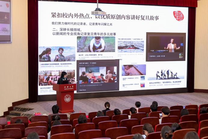 复旦大学“复旦青年”主编赵睿佳聚焦“如何讲好复旦故事”,分享了选题内容、特展策划、日常培训等方面的工作经验,展现了复旦青年卓越的宣传工作能力。