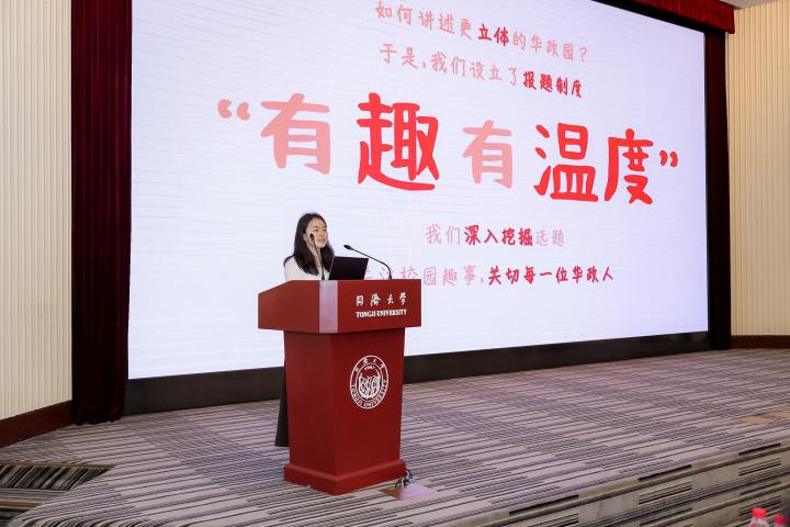 华东政法大学通讯社马悦宁从报题制度、沉浸式写作方式、推文内容产出等方面介绍了经验做法,展现了华政青年媒体“有趣、有温度、有料、有态度”的生动局面。