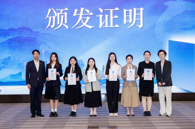 王烨捷、孙羽捷为第十七届中青校媒(上海)学生主席团成员颁发工作证明。范雪、刘佳煊为各组组长颁发工作证明。