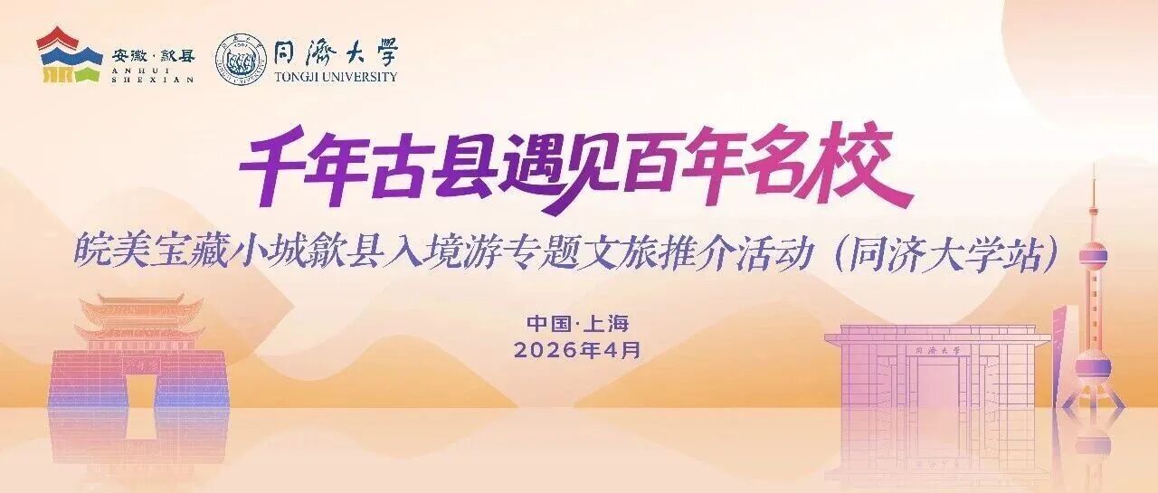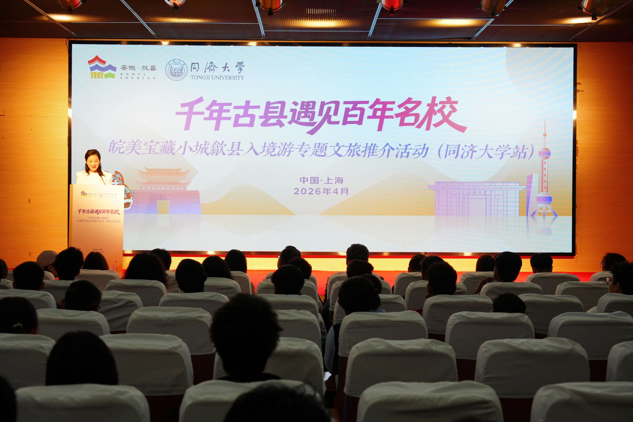 4月24日,“千年古县遇见百年名校——皖美宝藏小城歙县入境游专题文旅推介会”在同济大学四平路校区举行,以徽州文化为媒,以国际化视野为窗,向世界递出了一张浸润着东方美学与山水灵韵的文化名片。