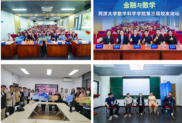 学院将校友工作作为学生就业价值观培育的重要渠道,建立健全校友工作运行机制,打造“校友论坛”“同数校友录”“领航论坛”等系列品牌活动,充分挖掘校友资源,协同校友力量助力生涯教育、加深行业认识、提升就业技能、拓展就业机会以及实现校友自身发展的五步曲,有力助推生涯教育和就业服务工作。2024年、2025年,学院先后举办“人工智能与数学”“金融与数学”同济大学数学科学学院第二届、第三届校友论坛,活动中以校友圆桌的形式,邀请优秀校友向学院师生分享工作经历及经验分享。