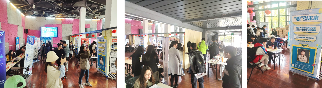 2021-2024年,学院连续四年举办春季专场招聘会,形成重点用人单位库,定点推荐、定向推送。2025年,学院举办春季、秋季两场专场招聘会,加强主渠道建设,召集39家用人单位,联动杨浦就业促进中心开展生涯咨询服务,覆盖学生140余人,投递简历140余份。