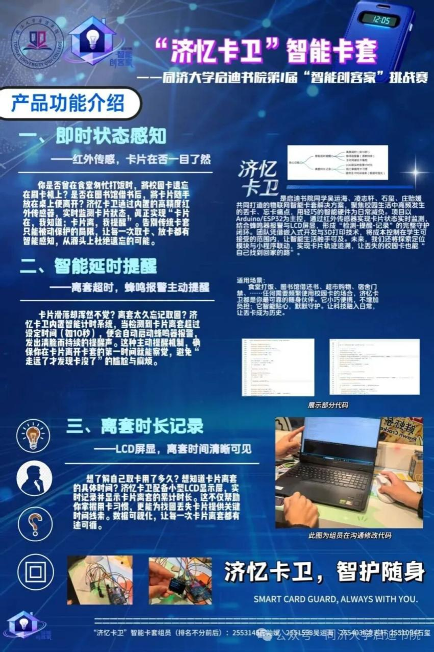 目前,赛事已成功孵化了6项融合多学科智慧的创新作品,其中4项已结项,将脑力劳动与动手实践紧密结合,有效提升了学生创造性解决实际问题的能力。相关项目展板已在启迪书院一楼大厅展出,生动呈现了同学们将创意落地的实践成果。
