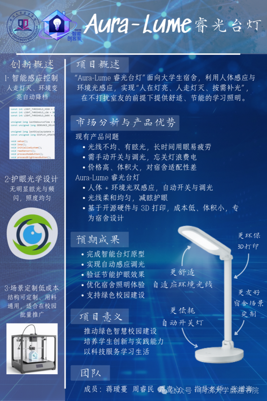 Aura-Lume是“智能创客”精神的实体化成果,兼具绿色节能、实用关怀与技术探索的鲜明特色。