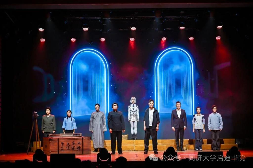 舞台剧《超时空同济》由《国家宝藏》团队与启迪学子共同演绎。节目以1937年“工程救国”的烽火信仰与2025年“科技兴邦”的时代担当为双主线,串联起同济校史中先辈以机床护山河、今辈以学术拓疆场的青春注脚,借近百年时空重叠的设定,展现同济人一脉相承的报国热忱。