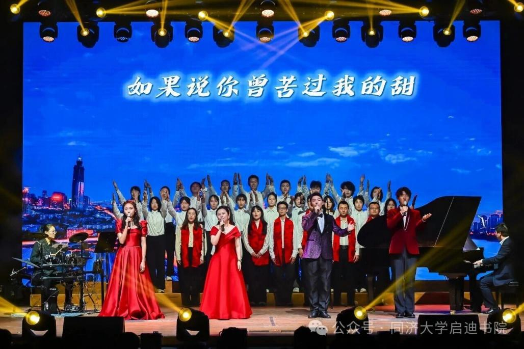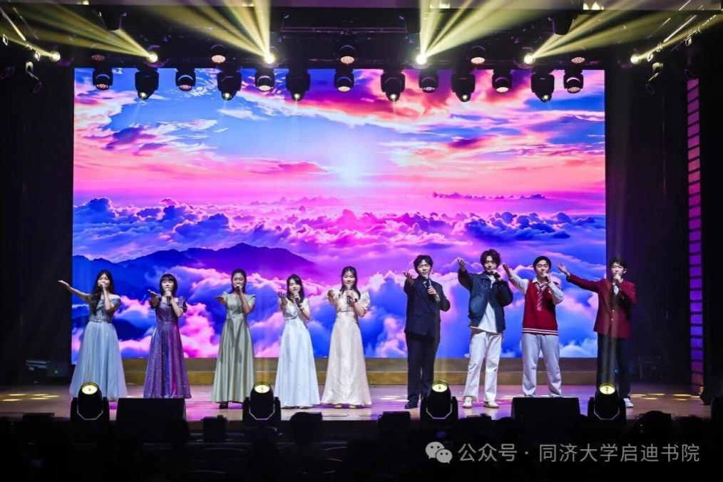 当《同济之歌》的歌声响起,歌声里满是同济人薪火相传的初心与使命,更凝聚着启迪学子勇毅前行的青春力量。这场充满科技感、文化味与青春气的晚会圆满落下帷幕,嘉宾与演职人员一起走到灯光下,留下这属于启迪、铭记成长的珍贵一刻。